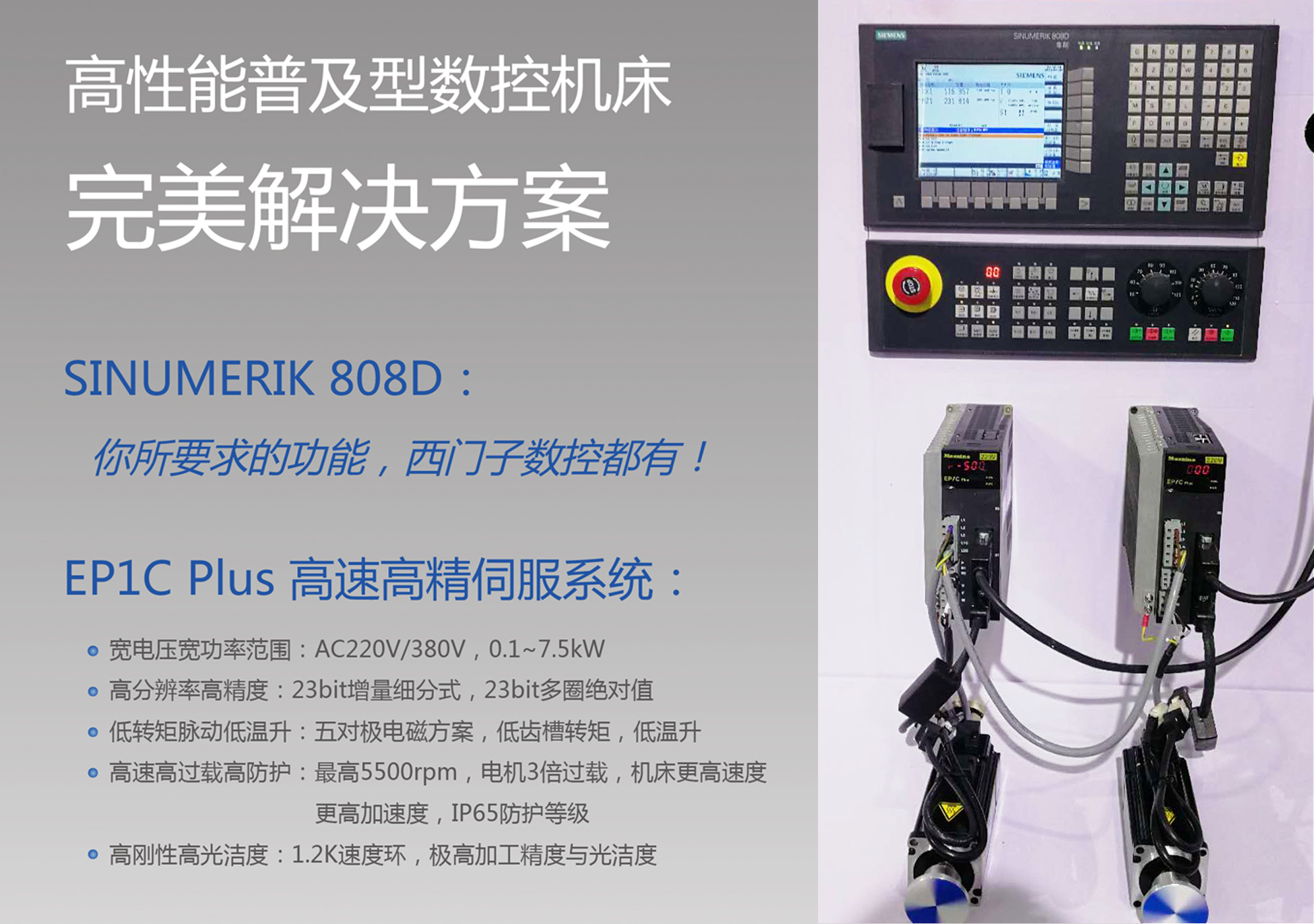 ▲ 西門子SINUMERIK 808D + EP1C Plus高性能普及型數(shù)控機(jī)床完美解決方案