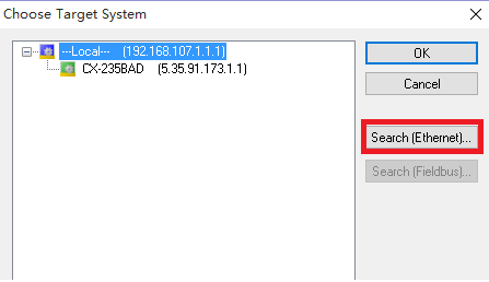彈出“Choose Target System”窗體, 點擊“search Ethernet”