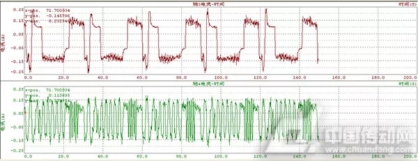圖5、SCARA機器人各軸工作電機電流的trace數據