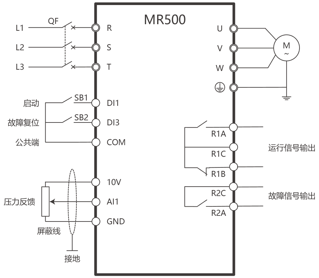 雖然水泵在低速運(yùn)行時(shí),電動(dòng)機(jī)的工作電流較小。但是,當(dāng)用戶的用水量變化頻繁時(shí),電動(dòng)機(jī)將處于頻繁的升、降速狀態(tài),而升、降速的電流可略超過電動(dòng)機(jī)的額定電流,導(dǎo)致電動(dòng)機(jī)過熱。因此,電動(dòng)機(jī)的熱保護(hù)是必需的。對(duì)于這種由于頻繁地升、降速而積累起來的溫升,變頻器內(nèi)的電子熱保護(hù)功能是難以起到保護(hù)作用的,所以應(yīng)采用熱繼電器來進(jìn)行電動(dòng)機(jī)的熱保護(hù)。