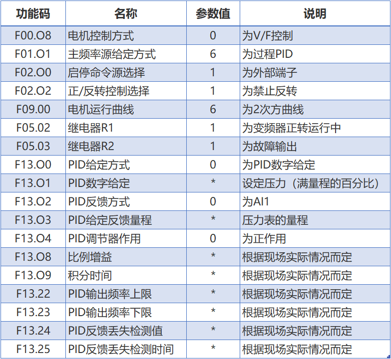 在主要功能預(yù)置方面,最高頻率應(yīng)以電動(dòng)機(jī)的額定頻率為變頻器的最高工作頻率。升、降速時(shí)間在采用變頻器內(nèi)置PID調(diào)節(jié)。升、降速時(shí)間應(yīng)盡量設(shè)定得短一些,以免影響由PID調(diào)節(jié)器決定的動(dòng)態(tài)響應(yīng)過程。控制原理如下: